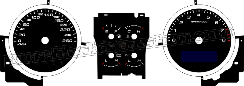 Standard gauge face colors for the Mustang are white, black or silver. The standard lighting color is the factory color. For custom designs call 1-866-943-8641. Price listed is for the gauge face only - cluster is not included.Upgrade to a Pearl Color Finish or Carbon Fiber Design for an additional $24.00 - click here for options!